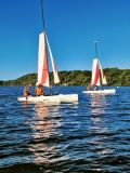 Avec les deux moniteurs, Bertrand et Gilles, ils ont navigué sur des catamarans ou des optimistes.